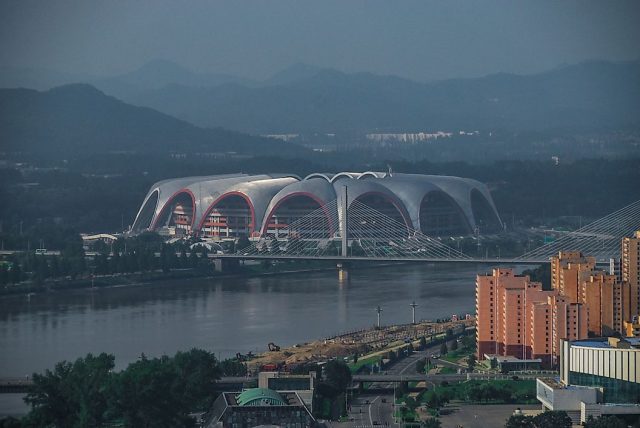 Rungrado 1 Mayıs Stadyumu, dünyanın en büyük stadyumudur. Resmi kapasitesi 150.000’dir ancak mekanın gerçek kapasitesinin 114.000’e yakın olduğu düşünülmektedir ve bu da onu kapasite bakımından dünyanın en büyük stadyumu yapmaktadır. Stadyum paraşüt şeklindedir. Kuzey Kore milli takımının da olduğu futbol maçları da dahil olmak üzere çok sayıda spor etkinliğine ev sahipliği yapacak şekilde tasarlanmıştır. Ancak çoğu zaman stadyum, askeri geçit törenlerine ev sahipliği yapmak için kullanılmaktadır. 1995 yılında stadyum, tesisteki bir güreş etkinliği sırasında 190.000 katılım ile dünya rekoru kırmıştır.