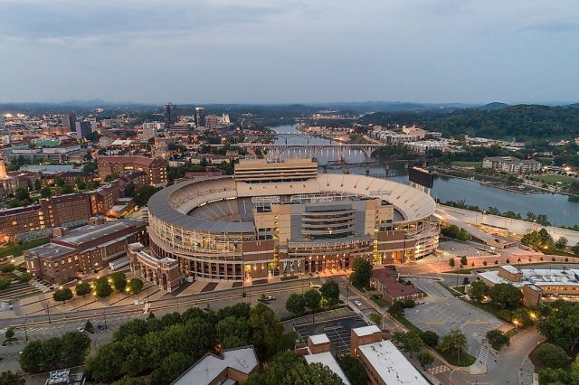 Knoxville, Tennessee’de bulunan Neyland Stadyumu, dünyanın yedinci en büyük stadyumudur. Neyland Stadyumu ilk olarak 1921’de Shields-Watkins Field adıyla açılmıştır ancak 1962’de Neyland Stadyumu olarak değiştirilmiştir. 2004 ve 2019 yılları arasında, mekan, yenilemek için kapsamlı, beş aşamalı bir planın bir parçası olarak büyük bir tadilattan geçmiştir ve bugün Neyland Stadyumu 102.455 kişilik kapasiteye sahiptir.